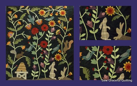 I'm recreating an antique quilt I own but sometimes I need a break from that. Wool applique provides a nice break. This piece was fun to stitch. It's called See no Evil and a kit is available here.